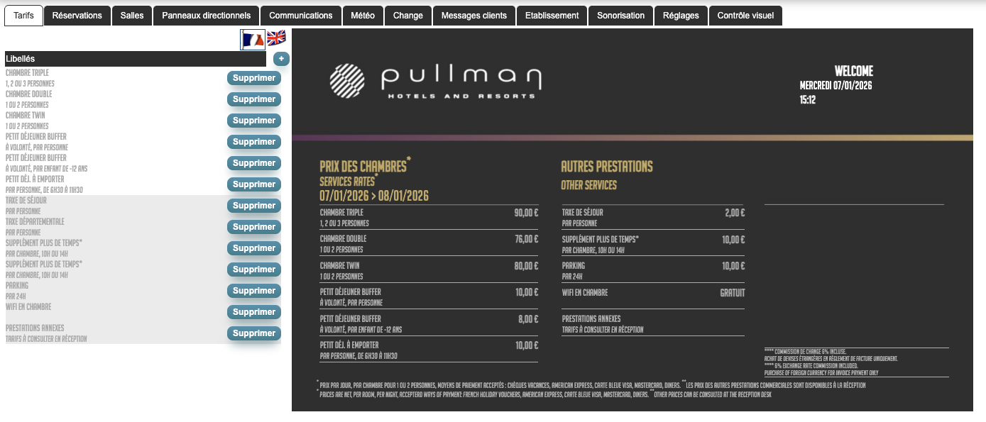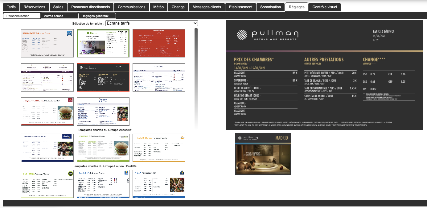 Un écran qui affiche la liste des salles de l'établissement, son état d'occupation, la réservation en cours et le fléchage pour s'y rendre...